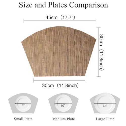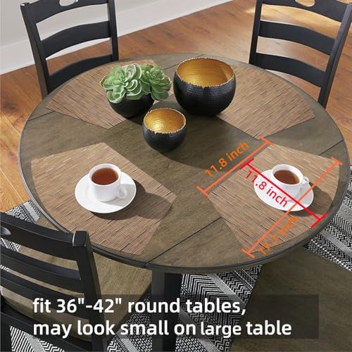 SHACOS Round Table Placemats Set of 4 Wedge Shape Woven Vinyl Place Mats Heat Resistant Wipe Clean Round Table Mats Home Table Decor (4, Tan)