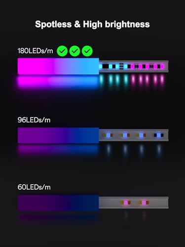 More Focused Lighting: 180 LEDs/m delivers intense brightness for gaming setups and home & kitchen under-cabinet lighting. Adjust cool/warm whites for task lighting or dynamic colors to elevate room decor drama. Pair with an LED strip diffuser to eliminate glare in studios or garage workspaces.