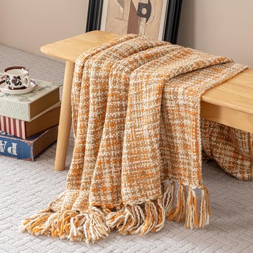 Soft Neon Color Knit Throw Blanket with Tassels, Cozy Boho Home Decro Throw for Sofa Couch Chair Bed, 50X60 Inch, Machine Washable, Orange Color Scheme
