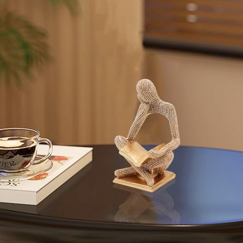 Sparkling Gold Reading Women Statue, Thinker Sculptures, Abstract Art Ornament, Modern Aesthetic Figurine Decoration for Home Living Room Bedroom Office Shelf Table Desk Bookshelf Decor
