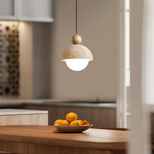 Spherical Wabi Sabi Pendant Light Natural Stone Retro Japanese Style Yellow Travertine Pendant Lighting Vintage Mini Wood Nordic Hanging Light for Kitchen Island Dining Room Bedroom Hallway Bedside