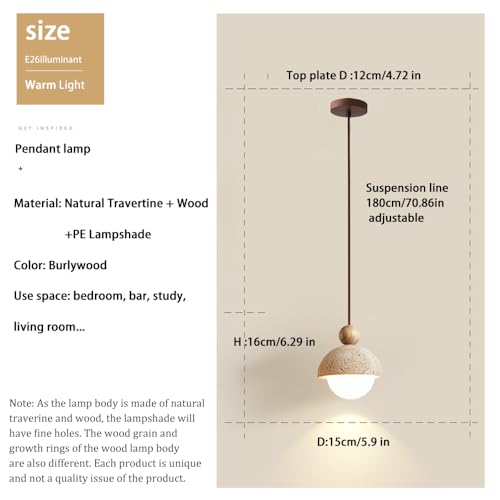 [Unique Design Pendant Lights] The gorgeous travertine pendant lights is handmade with natural stone, fresh design is an elegant update for homes, is a perfect hanging lamp for any space. The unique irregular pores and textures on the stone are natural characteristics, not defects. This is reasonable situation