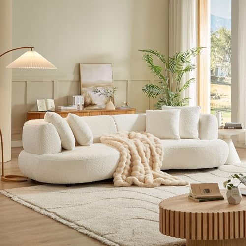 SSC SATITUNCASA Curved Sectional Sofa 102.36″, Cozy Boucle Couch for Living Room, 4-Seater Cream Couch with Pillows, Soft Upholstered Curved Sofa for Apartment, Modern Sofa in Cream Boucle Fabric