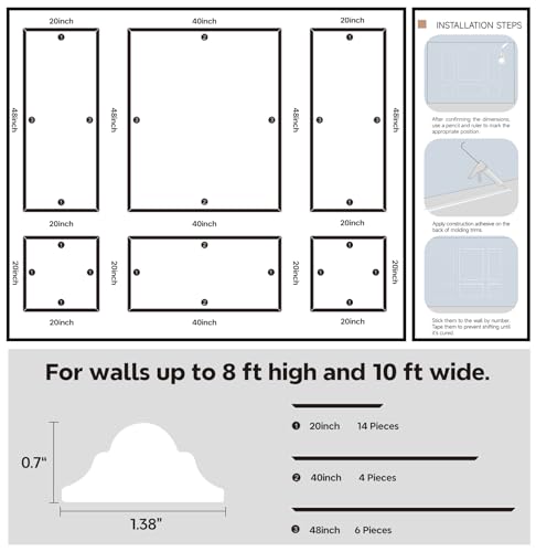 Molding Kit for Easy Wall Makeovers: With 6 ready-to-assemble frames in one pack, you’ll have everything you need to create a stunning wall feature in no time. Stylish walls, zero hassle!