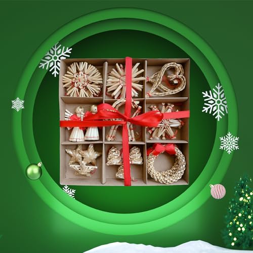 Christmas decorations: You will receive 26 straw pendants to decorate your Christmas tree in 9 different styles, bringing you and your family a beautiful visual experience and warm atmosphere.
