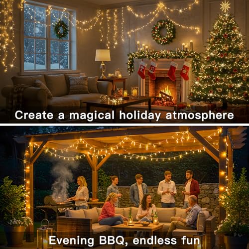 【Warm White String Lights Plug in 】 Ideal for Christmas trees, cozy bedrooms, and romantic patios, this durable plug-in design offers continuous illumination without the hassle of battery replacements. Enjoy year-round versatility, from holiday decorations to backyard BBQs, with 100 led fairy lights that bring warmth and charm to any setting. Creating a welcoming atmosphere effortlessly with our long-lasting, reliable dimmable string Lights.