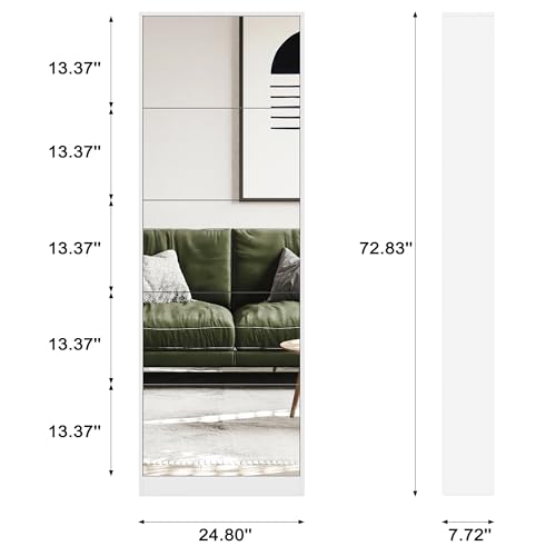 【Mirrored】 This stylish shoe cabinet with full-length mirror can organizes shoes and helps check the fitness of shoes and clothes. It is simple and beautiful decorative furniture, great for bedroom, hallway, apartment and home