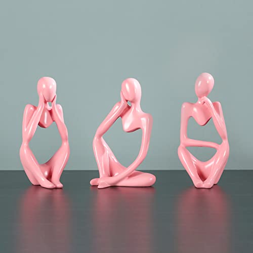 Thinker Statue Gold Decor Abstract Art Sculpture, Golden Resin Collectible Figurines for Home Living Room Office Shelf Decoration,Great Gifts Ideas (Pink)