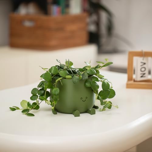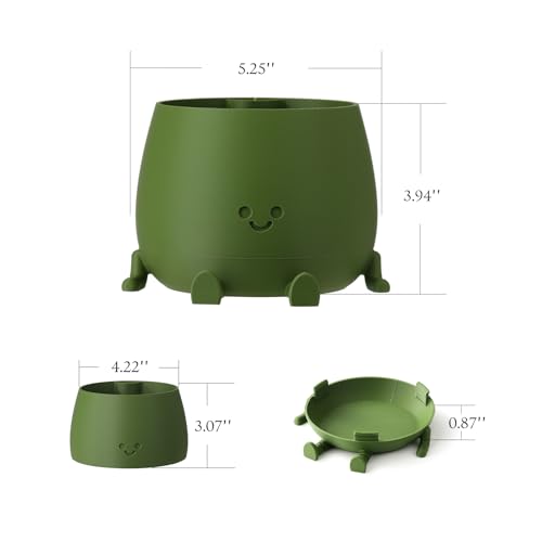 TOPOLA Happy Face Planter, 5.2 Inches Plastic Plant Pot, Self Watering Plant Pot with Drainage Holes for Indoor Outdoor, Succulent Pot, Funny Flower Pot, Dark Green