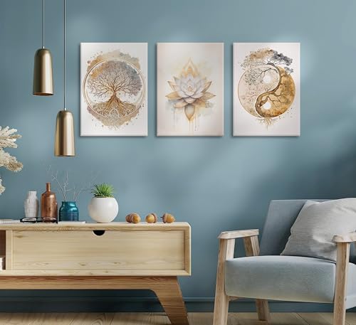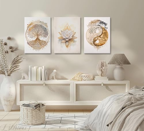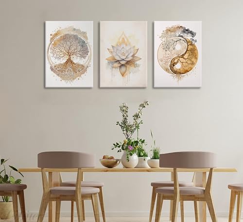 Tree of Life Canvas Wall Art Lotus Zen Painting Picture Wall Decor Abstract Yin Yang Fall Art Poster Print Artwork for Living Room Yoga Room Hotel Bedroom Home Decoration
