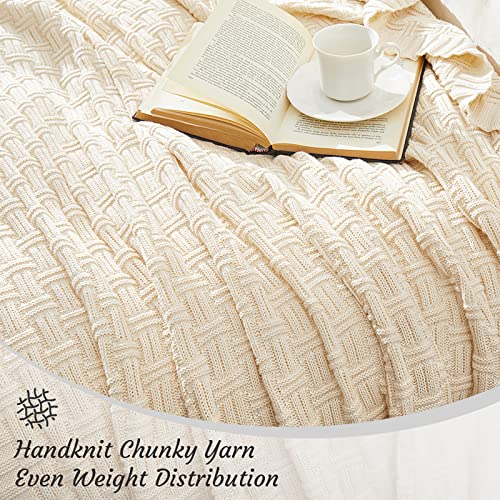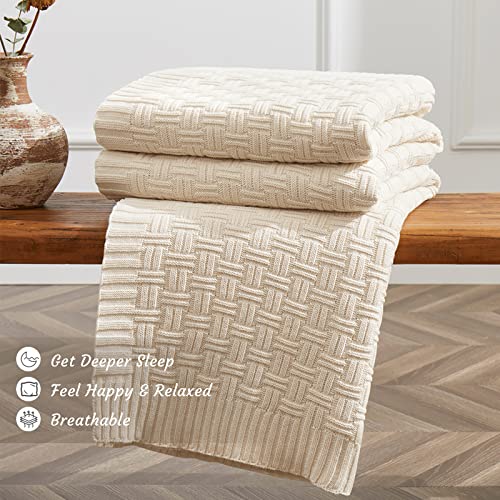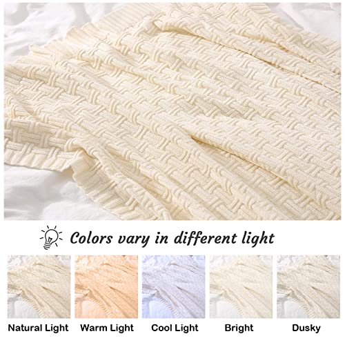 TREELY 100% Cotton Knitted Throw Blanket Couch Cover Blanket(30.31x 40.55 Inches, Ivory White)
