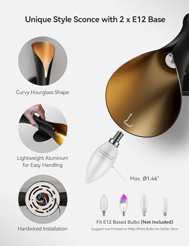 【Premium Aluminum Construction】Unlike flimsy plastic alternatives, Tubicen black and gold wall sconce is crafted from durable aluminum with a striking two-tone finish (gold interior, black exterior)—ensuring both sturdiness and timeless sophistication