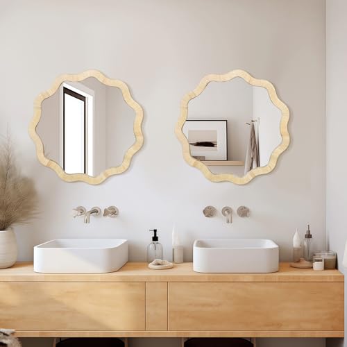 ULIKE Rattan Mirror for Wall, Bathroom 24 Inch Rustic Farmhouse Wall Decor with Handmade Wicker Frame, Boho Woven Mirror for Nursery Bedroom Living Room Entryway