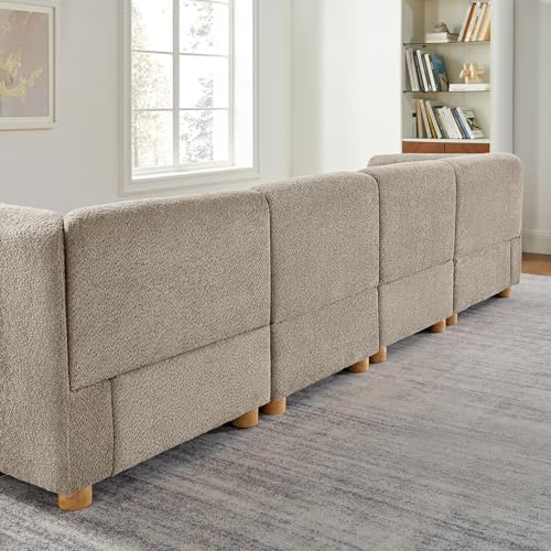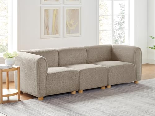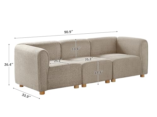 VANOMi Modular Sectional Sofa, 3 Seats Sectional Couch for Living Room, Cream White, Camel