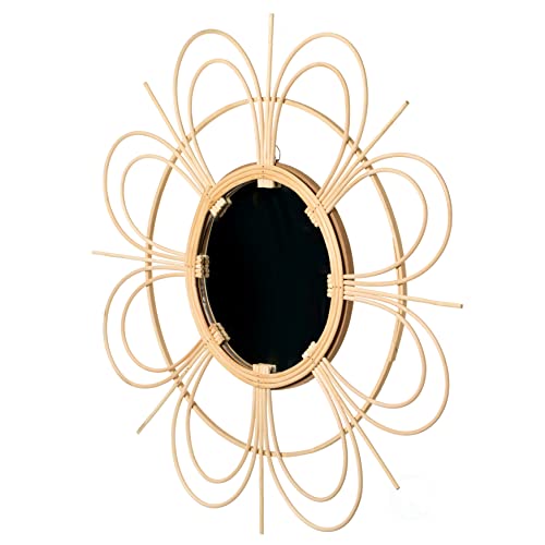 Add a boho touch and beautiful decor to your home with this hanging wall mirror. It is composed of rattan material with a flower design that will add a bohemian look to your home. Its neutral color allows it to complement and blend in with any home design theme. Ideal to hang it on the wall in your dining room, entryway, or vanity. Features an attached hook on the back of the mirror that makes hanging easy and convenient.​ Decorate your home and office while adding a boho and coastal charm!