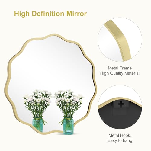WallBeyond Round Wavy Mirror for Wall Decorative 24 inch, Modern Round Mirror Aluminum Frame for Bathroom Bedroom Living Room Home House Office Entryway, Gold