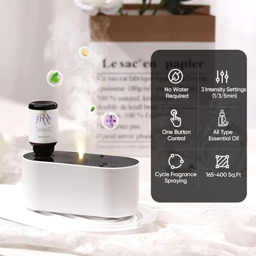 Waterless Diffuser for Essential Oil, Scent Air Aromatherapy Diffuser, Mini Portable Aroma Diffusers with 3 Mist Modes, Cycle Start, for 160-400 sq.ft Room Home Office Bedroom