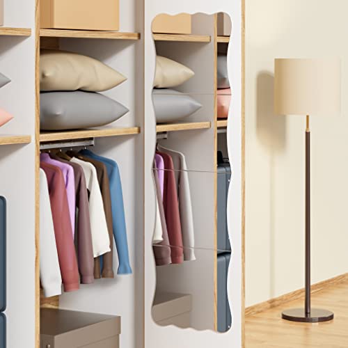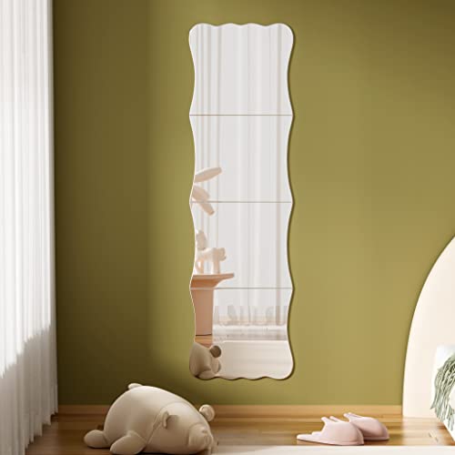 Wavy Full Length Shatterproof Acrylic Wall Mirror Tiles 47″ x 14″(4 Pcs 12″x14″), Non-Glass Safety Body Mirror for Baby Kids Playroom, Frameless Dorm Door Gym