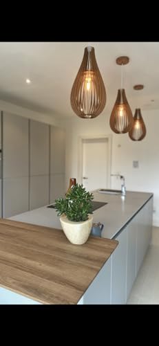 MID CENTURY MODERN STYLE PENDANT LIGHT: Create an impressive focal point with this wood pendant light that casts spectacular light patterns on the surrounding walls and ceiling. It belongs anywhere in the home but looks particularly elegant suspended over a kitchen island or dining table.