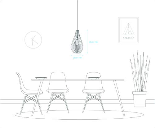 PRODUCT SPECIFICATIONS: Light shade = 48cm (19”) height / 26cm (10”) width. Black fabric cord length = 1m (39”) length. Ceiling cup = 14cm (5.6”) diameter. This contemporary ceiling pendant lamp is designed to hold an E27 lightbulb of up to 60w (not included with purchase).