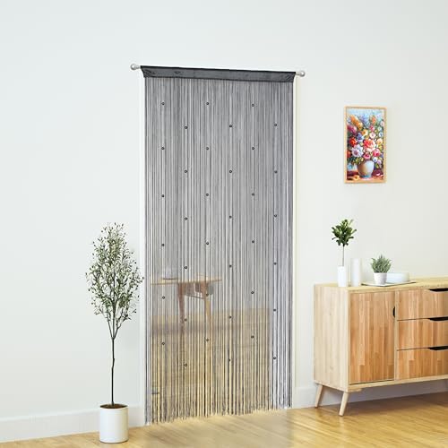 YaoYue Beaded Curtain Door String Curtains for Doorways Tassels Beads Hanging Fringe Hippie Window Hallway Entrance Wall Closet Bedroom Privacy Decor (Grey, 39″ W x 79″ L (Pack of 1))