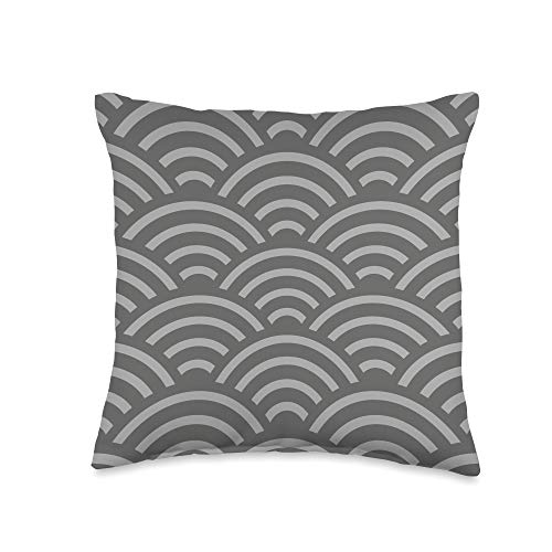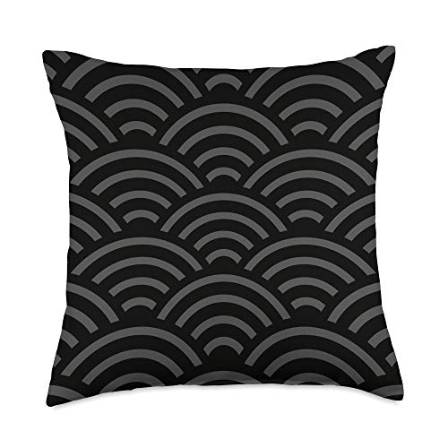 Yellow Wave Pattern Seigaiha Print Japandi Aesthetic Throw Pillow