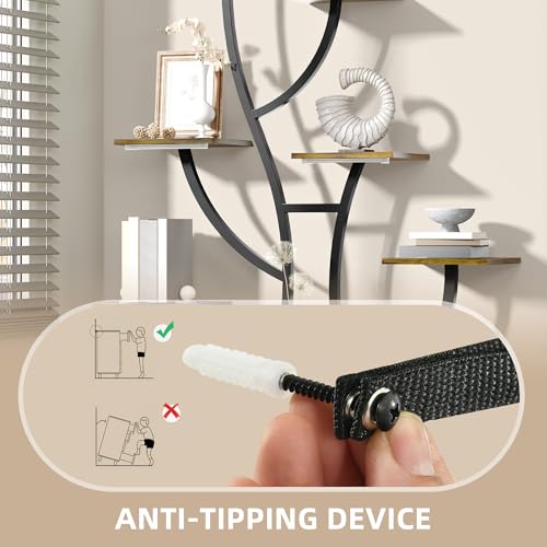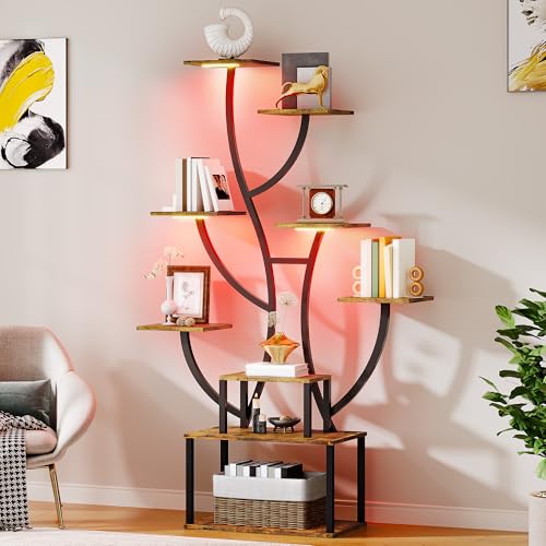 YITAHOME Tall Bookshelf with LED Light, Artistically Designed Tree Bookshelf 8-Tier Shelves, S Shaped Unique Bookshelves Corner Display Shelf for Home Office, Bedroom