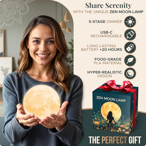 A Moon of Meditation: Embrace serenity with the Zen Moon Lamp’s hyper-realistic 3D design, capturing every lunar detail. Its calming glow enhances yoga, meditation, and relaxation, while the handcrafted wooden stand adds elegance to any space.