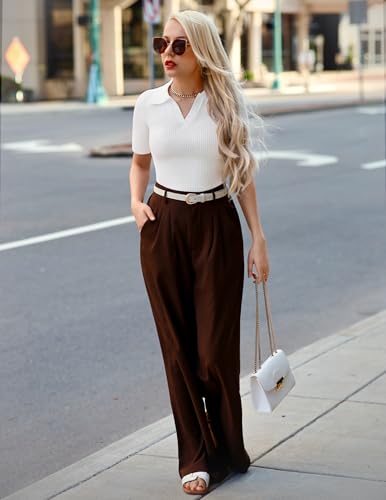 ZESICA Women’s Short Sleeve V Neck T Shirts 2025 Summer Ribbed Knit Slim Fitted Basic Solid Color Tee Tops
